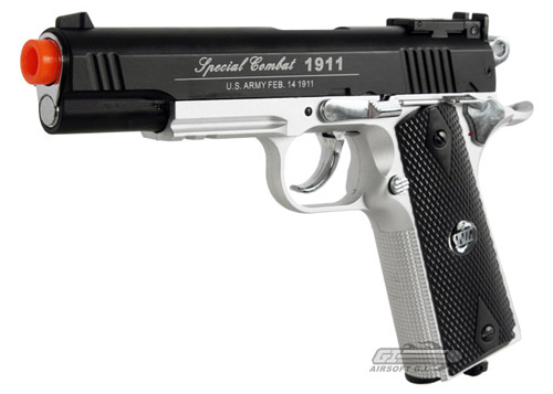 This airsoft pistol from Airsoft GI is ONLY recommended for practical/target shooting, not for skirmishes... "The WG Full Metal Slide CO2 Airsoft Gun is a powerful airsoft pistol. This is a very unique and highly effect pistol from WG, as if you would expect anything else. Since the gas system, the magazine, and the chamber don't move at all this gun is extremely powerful/accurate/and efficient. In addition to these great performance features WG has also given the Xtreme a railed lower frame to mount lasers and/or flashlights.