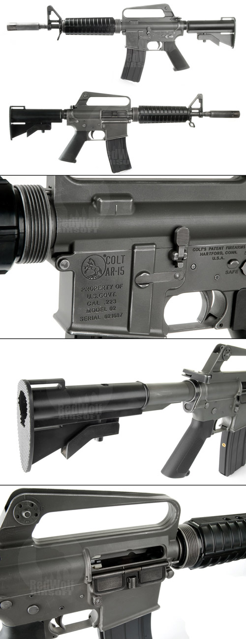 One of the latest RedWolf Airsoft custom guns... "Using a CNC milled XM177 Metal Body from Bomber Airsoft, the XM177E1 Redwolf Custom in association with Guns Workshop has custom built this limited edition Gas Blowback Carbine for Bomber. CNC milled from 6063 Aluminum, the body is extremely robust is has very little wobble. The XM177E1 does not feature any rails for attachment of advanced optics, instead it has opted to stick with the most basic setup with the integral carry handle/iron sights. Weathered to look as though its been through a tour of Vietnam shilst maintaining its structural integrity.