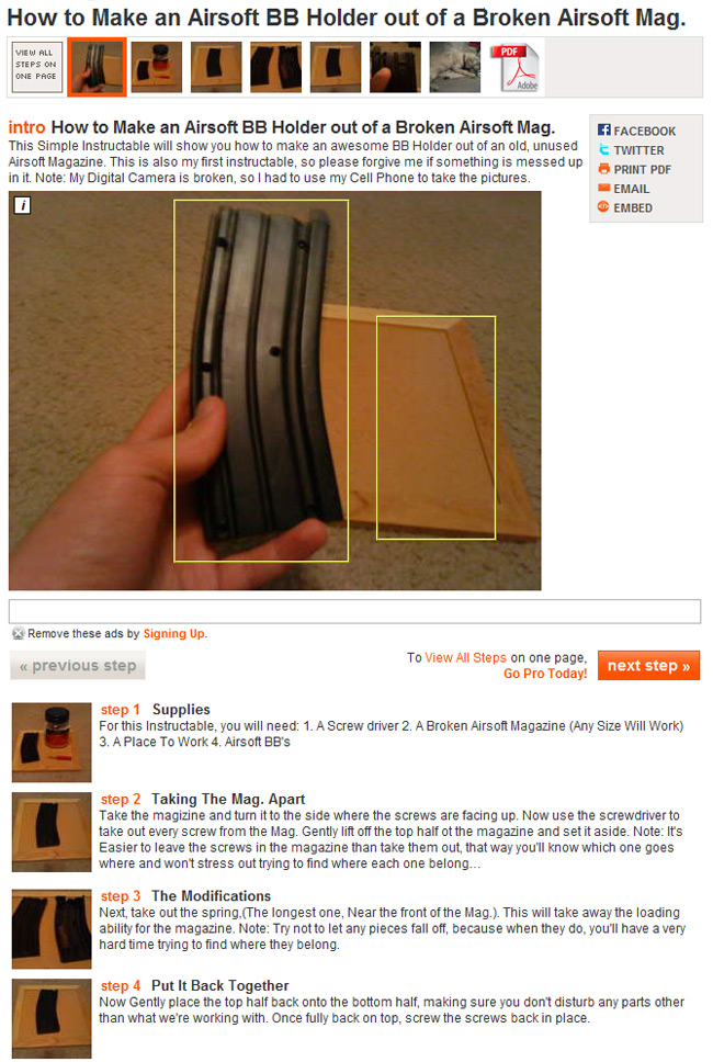 It has been quite a while since we last read a meaningful airsoft DIY project at Instructables. This one does get out attention as it helps airsoft players recycle broken airsoft magazines and turn them into BB holders while in the skirmish field. This mainly about high capacity magazines so you can have enough bbs for a magazine when it's needed. So don't throw those magazines away, they will still come in handy, and you can fill up those M4 magazine pouches with enough magazines and still look the part rather than with BB bottles.