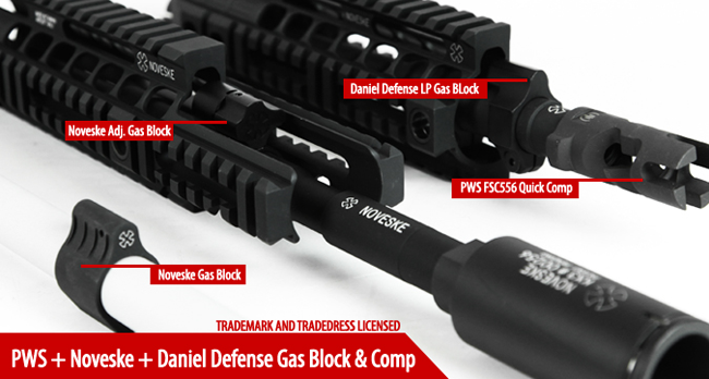 New releases from MadBull Airsoft and are all complete with Daniel Defense or Noveske trades... "Noveske Gas Block (2 styles), Daniel Defense Low Profile Gas Block and PWS FSC 556. Gas Block is for real gun to direct gas from barrel to the bolt. Airsoft gun use Gas Block as a decoration items. It will make your AEG look more authentic! All MadBull products are licensed from real gun companies. It is 1:1 scale without function. Licensed by Noveske, Daniel Defense, and PWS.