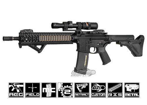 This is part of the latest batch of custom guns from Airsoft GI, and this one's around a whopping US$760... "The Airsoft GI Full Metal MagPul Warrior Carbine is like no other custom airsoft gun we've ever built. With the exception of the rail stystem every single piece on this gun is Magpul. This gun features Magpul's UBR stock which has six positions and is extremely sturdy compared to other retractable stocks. The MOE pistol grip is more comfortable than the standard M4 pistol grip to reduce fatigue.